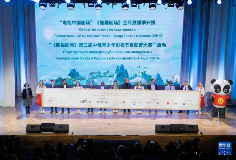 9月22日,在俄罗斯首都莫斯科,金砖国家媒体机构代表共同启动《熊猫剧场》“金砖展播季”。