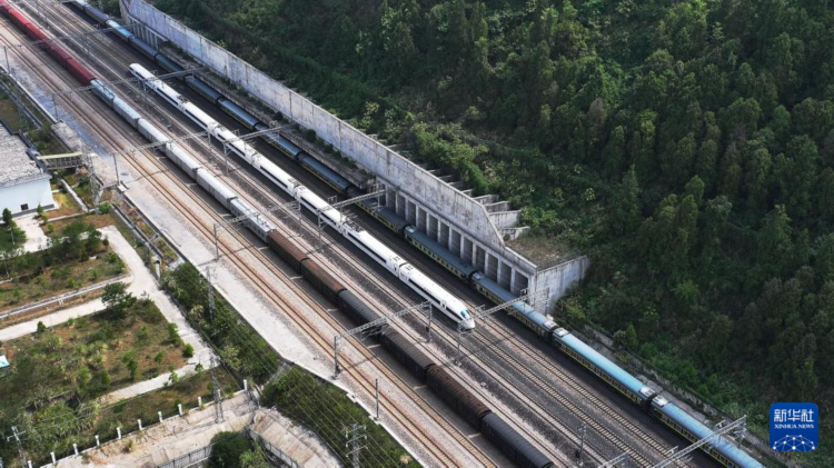 9月19日,高铁与普快列车同时经过禾家村站(无人机照片)。