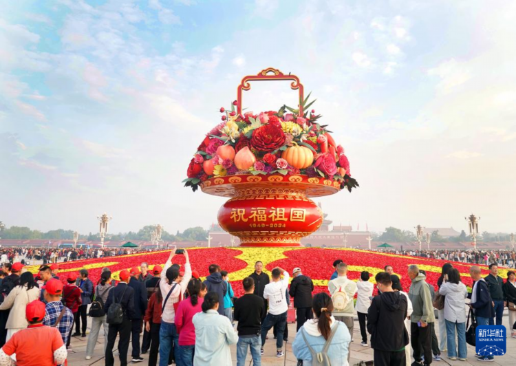 9月25日在天安门广场拍摄的“祝福祖国”巨型花篮南侧。