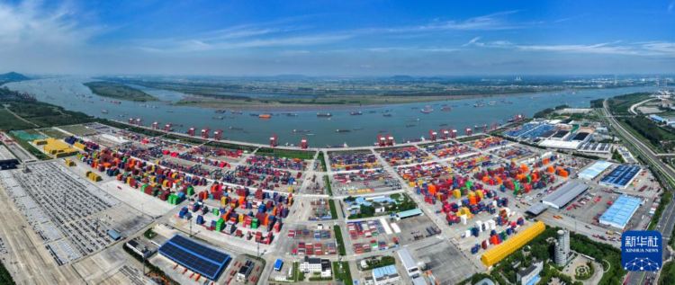 繁忙的南京港龙潭港区集装箱码头(9月25日摄,无人机全景照片)。