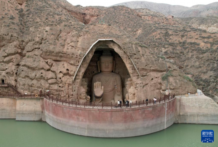 4月20日拍摄的武威天梯山石窟(无人机照片)。