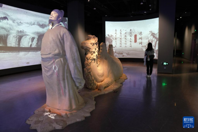 7月9日,游客在武威汉唐天马城凉州词馆参观。