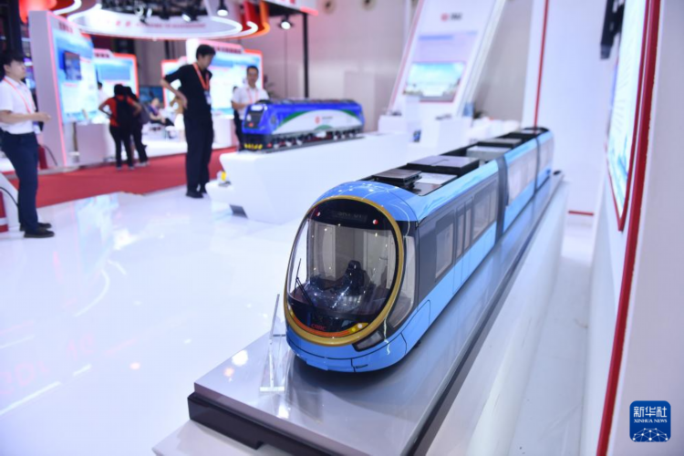 9月26日,在第21届中国—东盟博览会先进技术展区,观众在参观超级虚拟轨道列车模型。