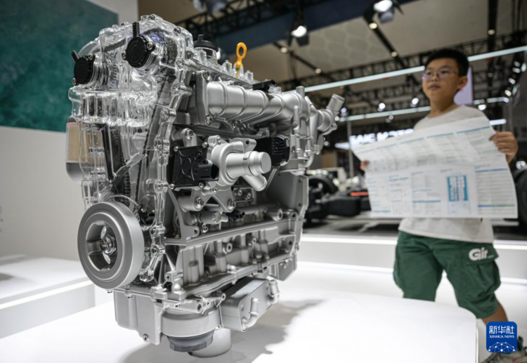 9月28日在极光湾科技有限公司展台拍摄的高效甲醇直喷增压发动机。