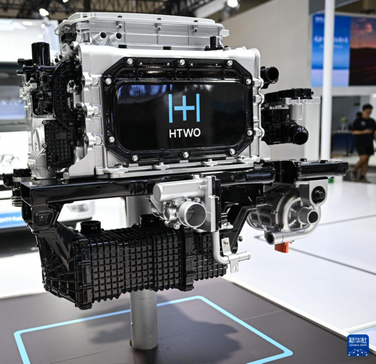 9月28日在现代汽车集团展台拍摄的氢燃料电池系统。