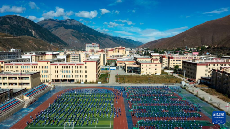 这是9月28日拍摄的道孚县城关第一完全小学(无人机照片)。