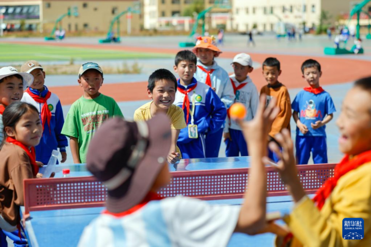 9月27日,道孚县城关第一完全小学的学生在体育课上打乒乓球。