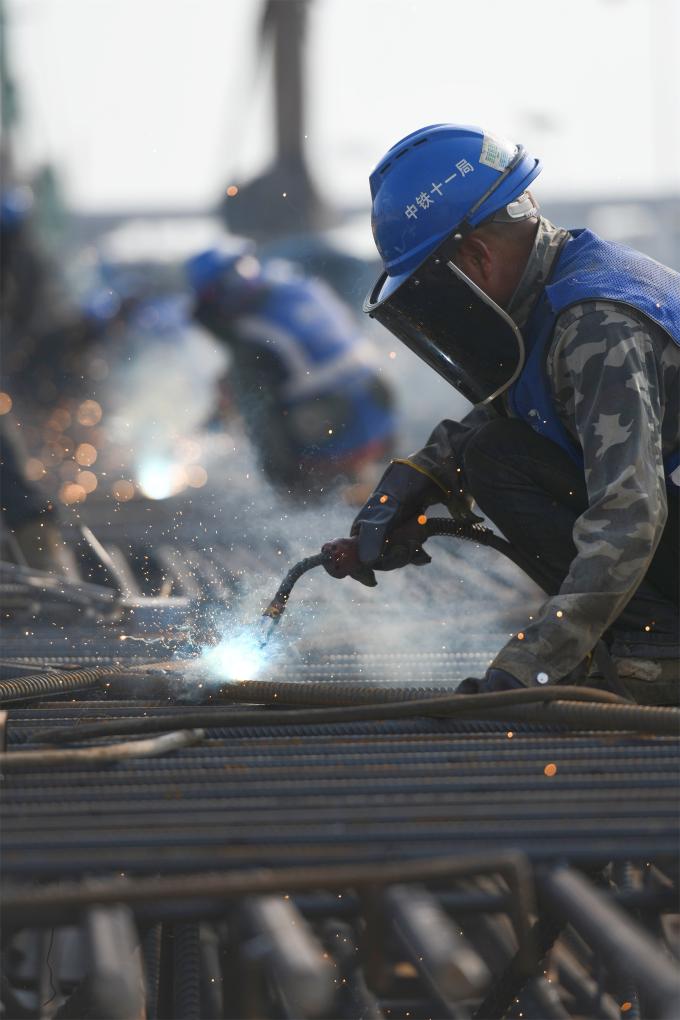 烈日当空,在广州市南沙区南珠中城际铁路中铁十一局的工地上,建设者们挥汗如雨。