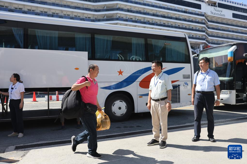 10月1日,中国驻塞浦路斯使馆工作人员在塞浦路斯利马索尔港迎接从黎巴嫩撤离的中国侨民。新华社记者 李京 摄
