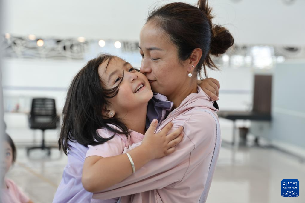 10月1日,在塞浦路斯利马索尔港,一名从黎巴嫩撤离的小女孩与妈妈玩耍。华社记者 李京 摄