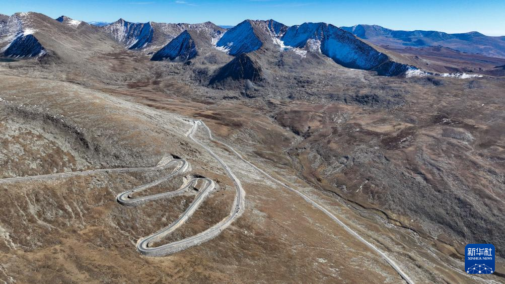 10月1日,车辆行驶在阿禾公路上(无人机照片)。