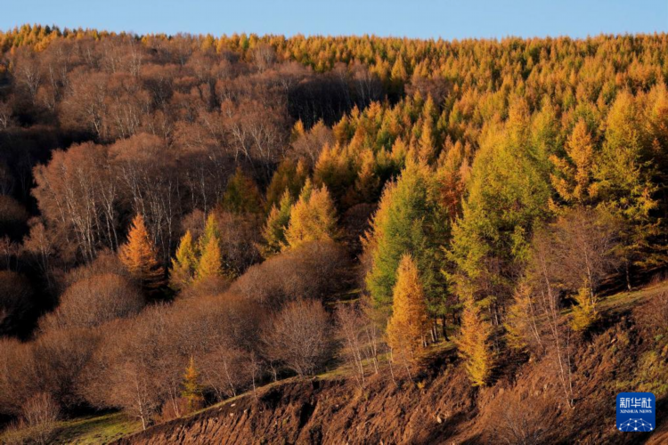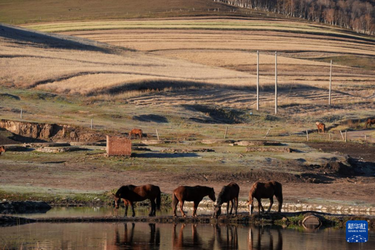 河北省承德市丰宁满族自治县坝上地区的清晨,阳光给山川河湖披上斑斓秋色,风光怡人。