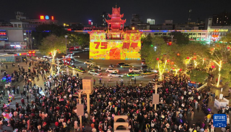 国庆假期,宁夏银川市兴庆区推出古建筑灯光秀、文旅夜市等丰富多彩的体验、消费活动,吸引众多游客观赏打卡。