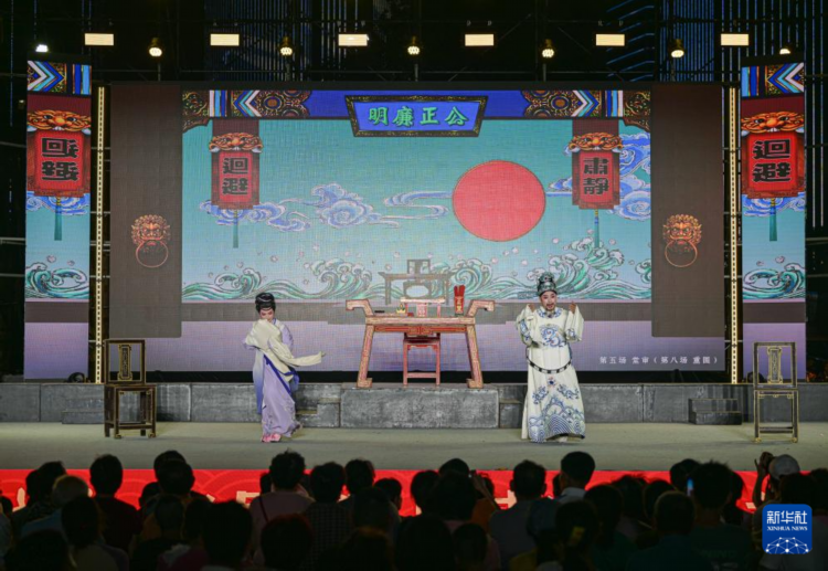 10月6日,“琼韵荟”琼剧精品艺术进社区展演在海南省海口市万绿园举行。来自海南省琼剧院一团的演员们为观众献上了古装琼剧《巡按审妻》。观众在观看琼剧过程中,感受非遗文化的魅力。