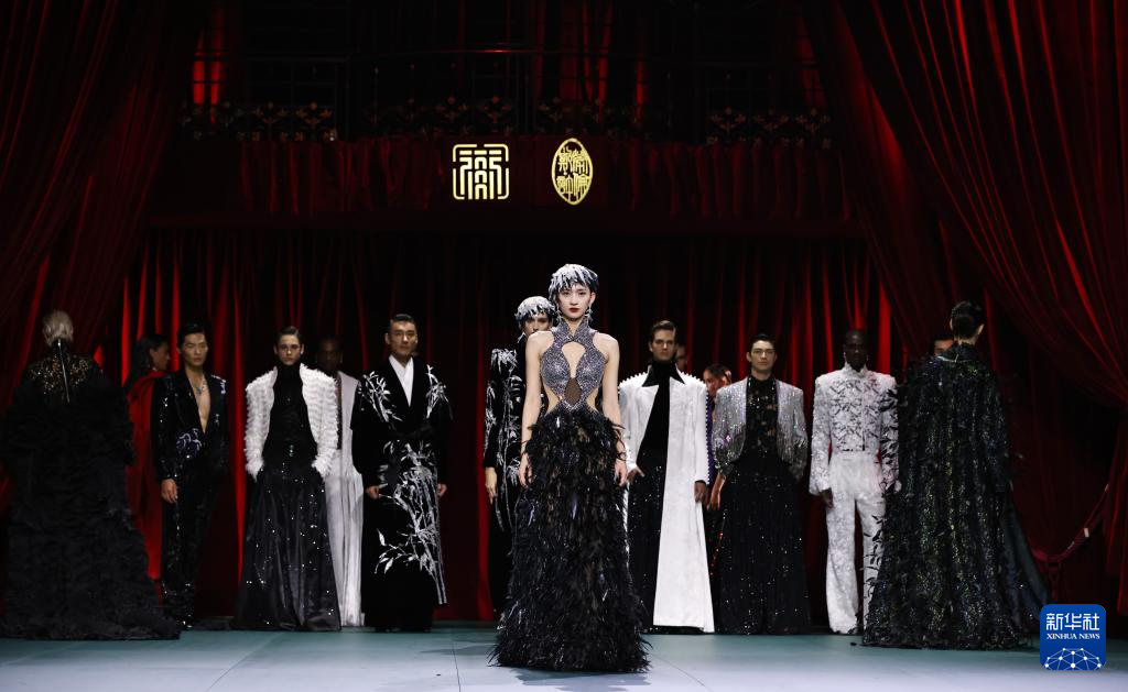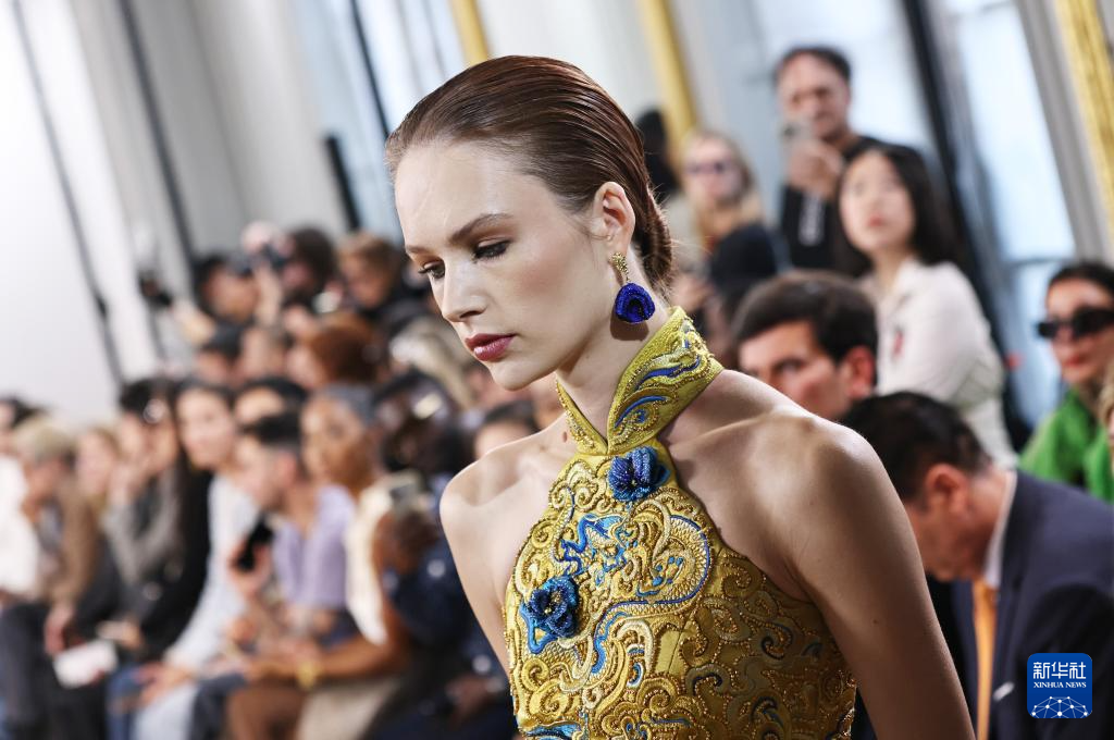 “恭王府服饰秀”再度亮相法国巴黎 9月28日,模特在法国巴黎举行的“恭王府服饰秀”上展示服装。 聚焦中式审美和传统工艺的“恭王府服饰秀”28日再度在法国巴黎举办,展示中华优秀传统文化与当代时尚设计交融的发展成果。活动由中国文化和旅游部恭王府博物馆主办,巴黎中国文化中心协办。服饰秀共展示48套服饰,按春夏秋冬划为4个章节轮番展示,融合苗绣、锡绣、云锦等传统工艺与恭王府传统文化元素。 新华社记者 高静 摄