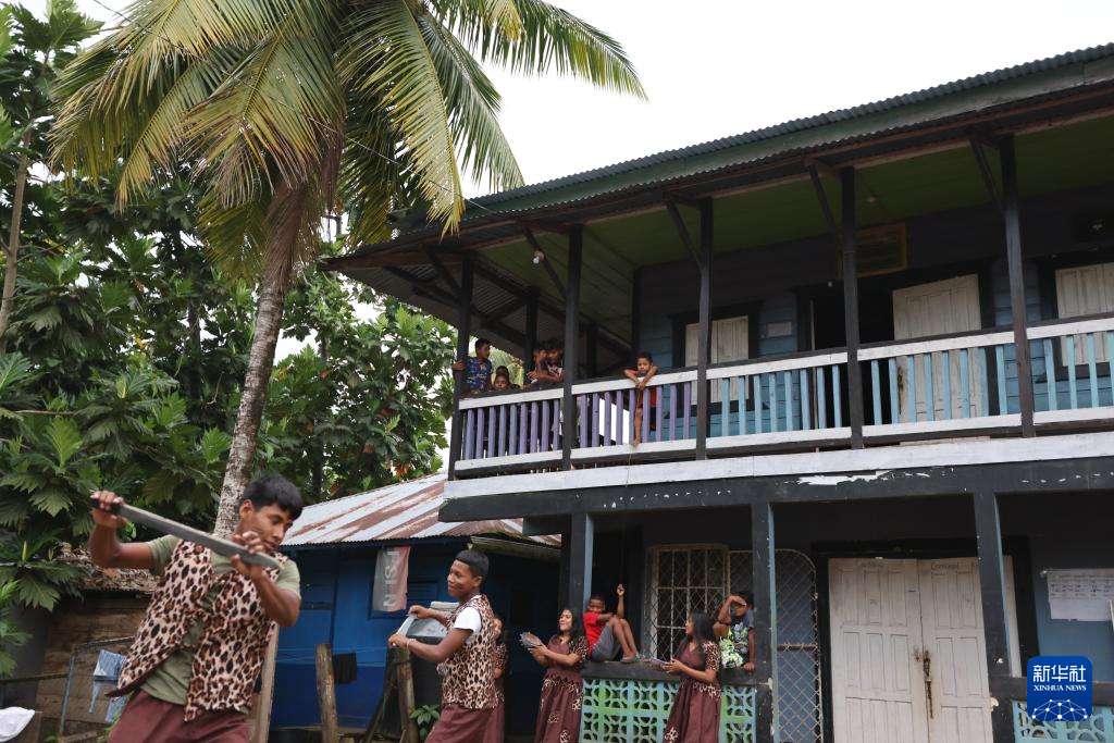 尼加拉瓜拉马岛的渔民生活 9月25日,在尼加拉瓜南加勒比海岸自治区的拉马岛,当地年轻人表演拉马族特色舞蹈。 拉马岛位于尼加拉瓜东海岸的一片广阔水域中,距离最近的布卢菲尔兹城区约15公里。生活在此的拉马族多以打渔为生,有独具特色的渔民文化。拉马岛居住着约225个家庭、2000名居民。 新华社记者 李梦馨 摄