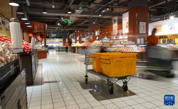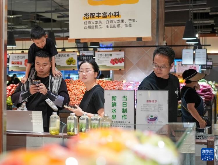2024年8月22日,顾客在许昌胖东来天使城店选购商品。新华社记者 刘振坤 摄