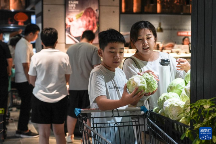 2024年8月20日,顾客在许昌胖东来天使城店选购蔬菜。新华社记者 刘振坤 摄
