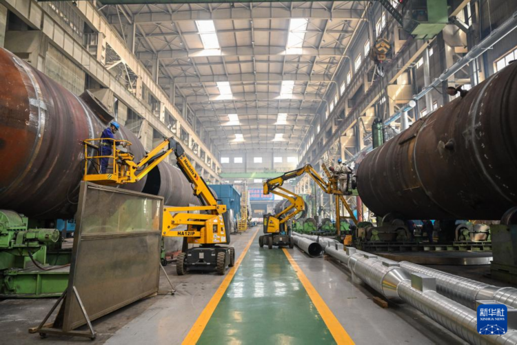 10月8日,工人在哈电集团哈尔滨锅炉厂有限责任公司重型容器分厂内作业。