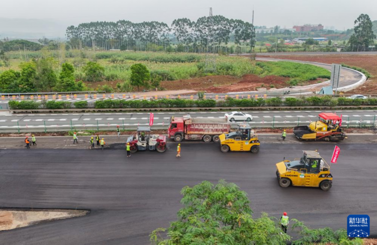 当日,由中铁二十局承建的成(都)南(充)高速扩容工程重点控制性工程淮口互通进入路面施工阶段。