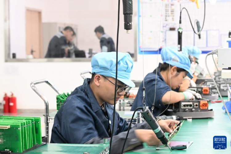 10月9日,在天津市云驱科技有限公司,生产线上的员工在组装燃料电池控制器。