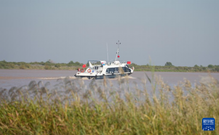 10月11日,一艘游船在山东黄河三角洲国家级自然保护区的黄河上行驶。