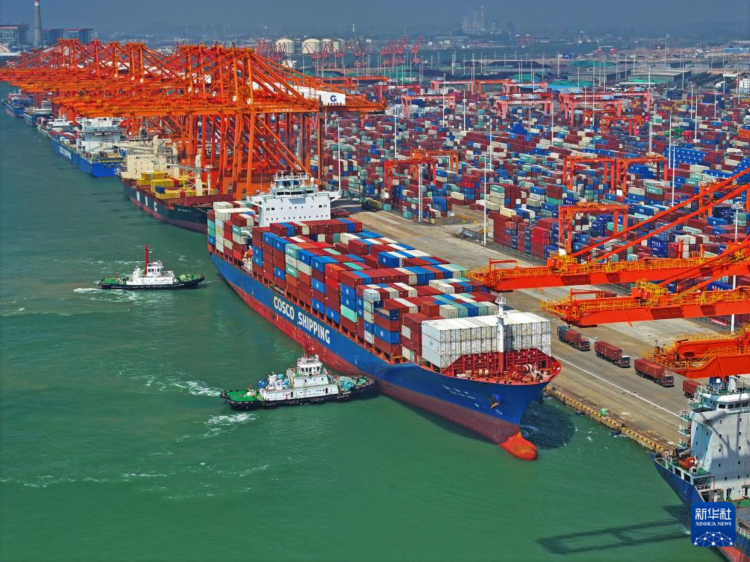 10月13日,一艘集装箱货轮在广西北部湾港钦州港区码头靠泊(无人机照片)。