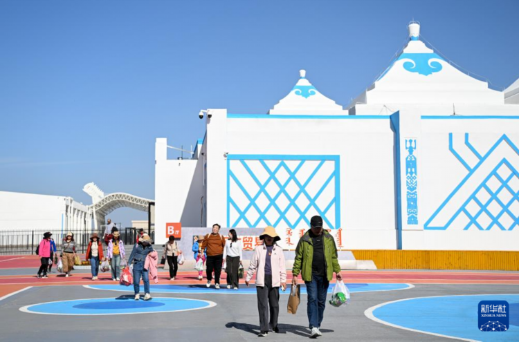 10月14日在策克口岸的中蒙边民互市贸易区拍摄的游客。