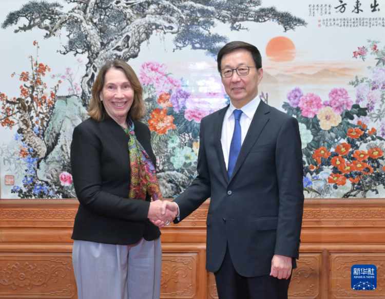 10月15日,国家副主席韩正在北京会见澳大利亚联邦议会参议长莱恩斯。新华社记者 高洁 摄