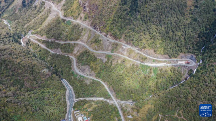 10月14日拍摄的玉麦乡附近的公路(无人机照片)。