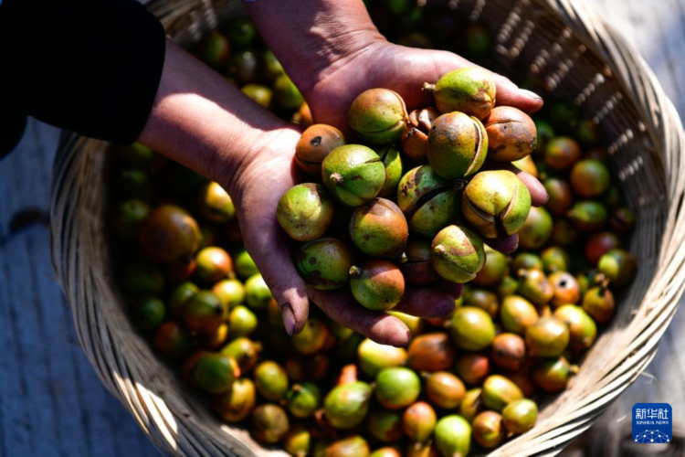 近日,贵州省龙里县颐光山林油茶生态园种植的油茶果迎来收获季,种植户忙着采收、搬运、晾晒。