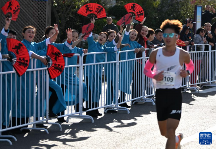 10月20日,半程马拉松参赛选手在比赛中冲线。