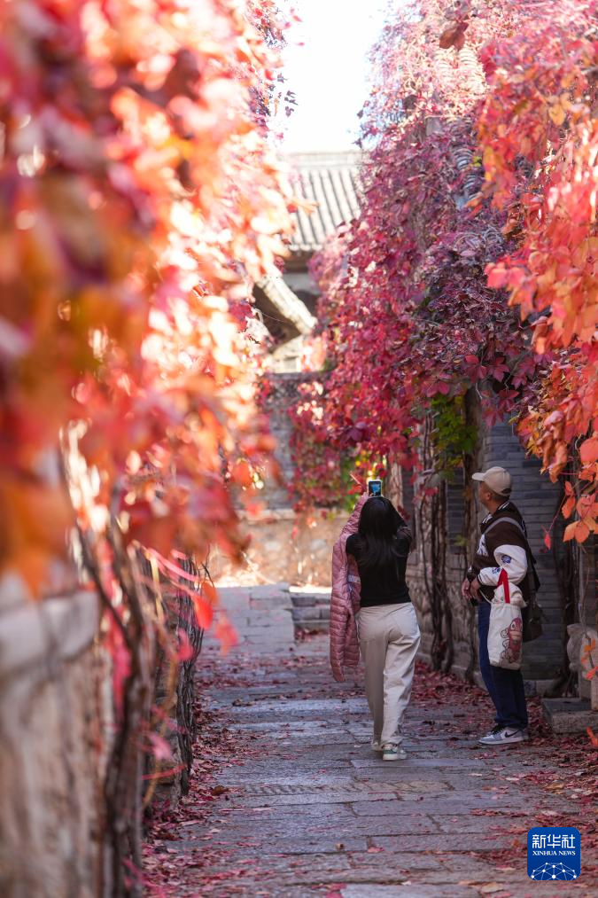 金秋时节,位于北京市密云区的古北水镇彩叶缤纷,吸引许多游客前来游玩赏秋。