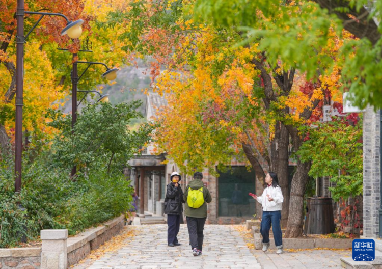 金秋时节,位于北京市密云区的古北水镇彩叶缤纷,吸引许多游客前来游玩赏秋。