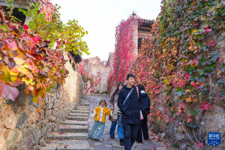金秋时节,位于北京市密云区的古北水镇彩叶缤纷,吸引许多游客前来游玩赏秋。