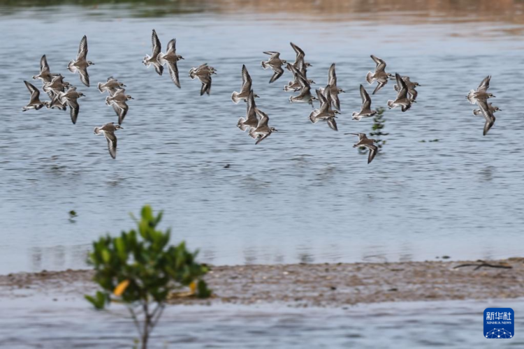 据海南儋州新盈红树林国家湿地公园监测,今年越冬候鸟已陆续飞抵,在海滩和红树林间舞出翩跹身影。