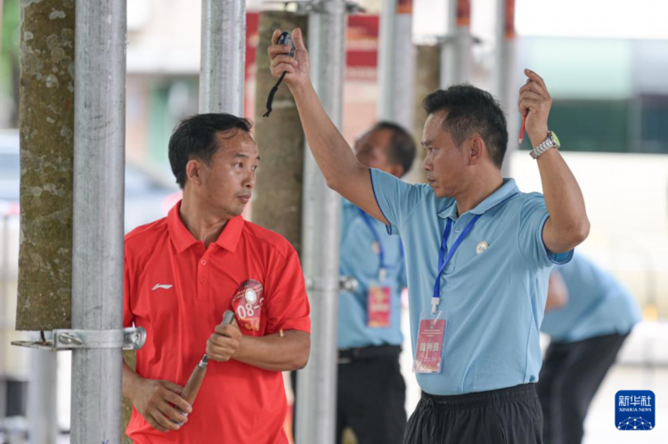 10月21日,在2024年第六届全国农业行业职业技能大赛橡胶割胶工技能竞赛决赛实操考试现场,裁判员为参赛选手计时。