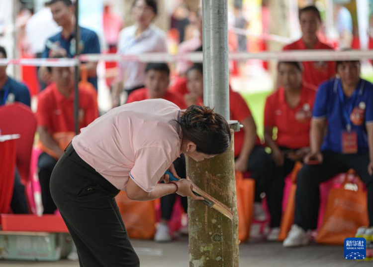 10月21日拍摄的2024年第六届全国农业行业职业技能大赛橡胶割胶工技能竞赛决赛实操考试现场。
