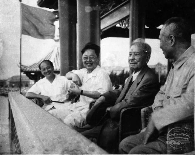 1957年端午节,陈嘉庚 (左3)在主席台上观看集美龙舟赛