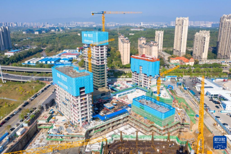 这是10月23日拍摄的中建三局江西金控数字金融创新产业园项目施工现场(无人机照片)。