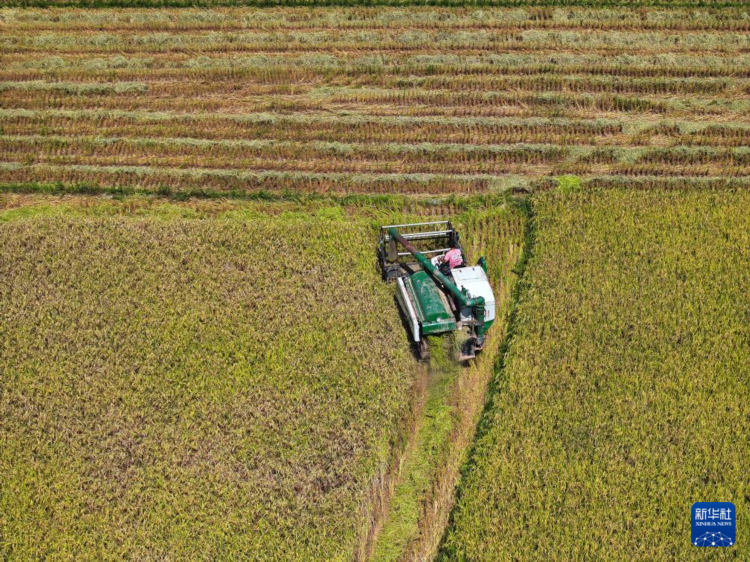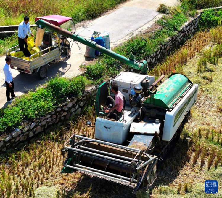 时下,广西各地晚稻陆续进入收获季节,田园里一派繁忙景象。