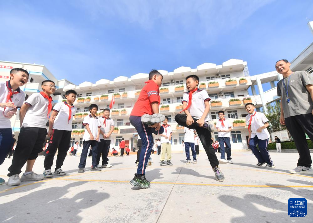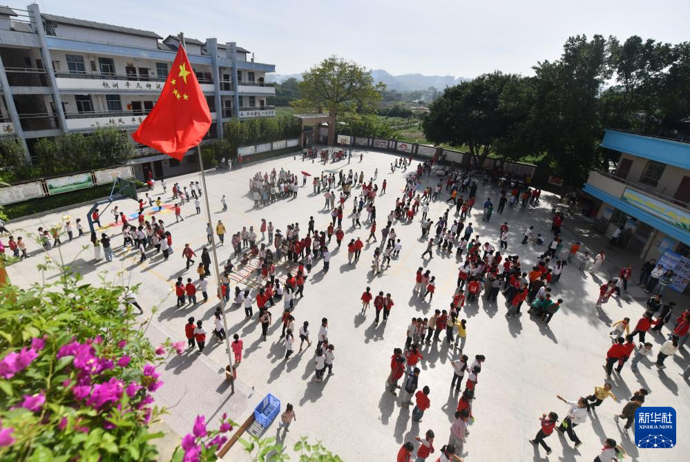 在梧州市平浪希望小学,学生们在体育大课间进行体育运动(10月25日摄)。