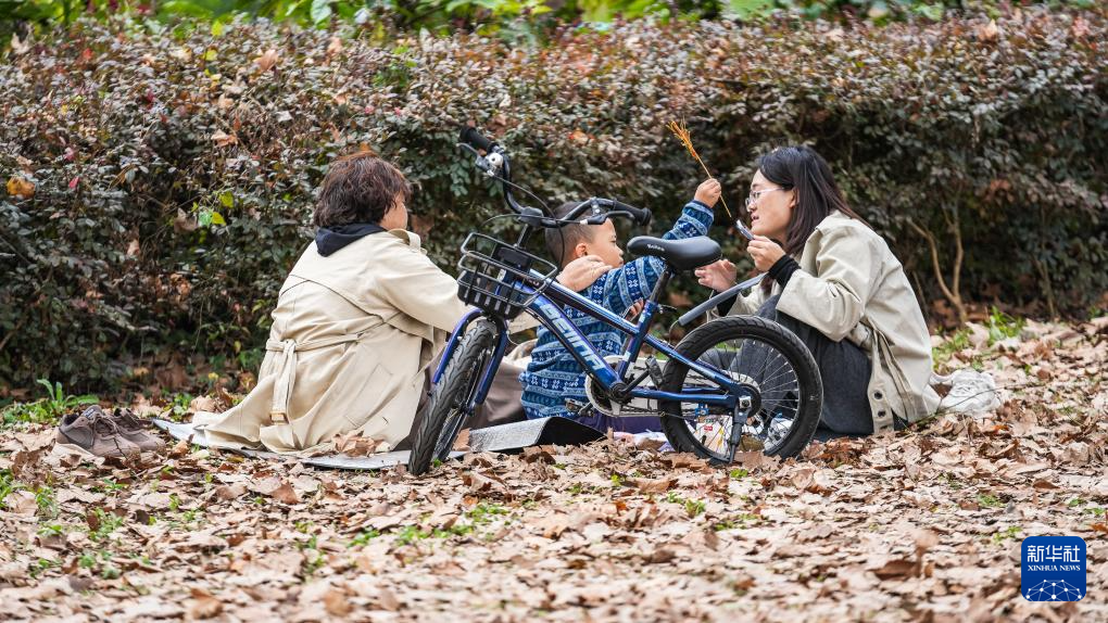10月27日,市民在贵阳市花溪国家城市湿地公园黄金大道席地而坐。