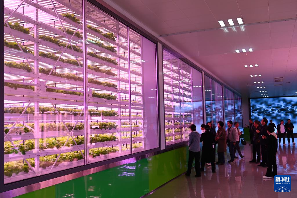 10月26日,观众在杨凌智慧农业示范园参观植物工厂。