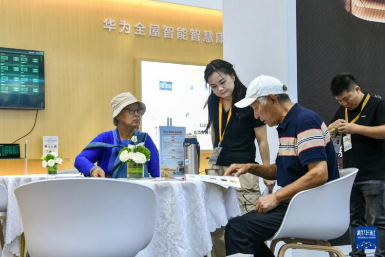 10月27日,老人在博览会上了解华为智慧康养产品。