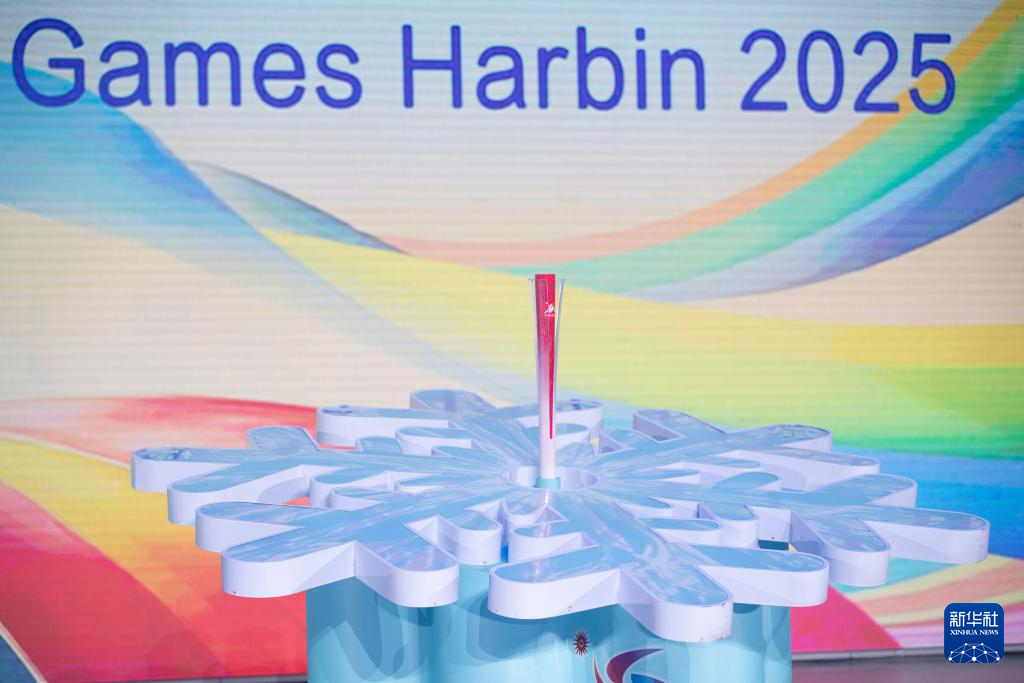 这是10月30日在活动现场拍摄的亚冬会火炬。本届亚冬会火炬主题为“澎湃”,寓意着本届亚冬会将充满活力与激情。