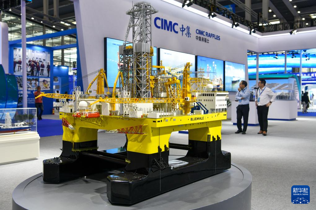 10月31日拍摄的2024中国海洋经济博览会上展出的蓝鲸1号钻井平台模型。