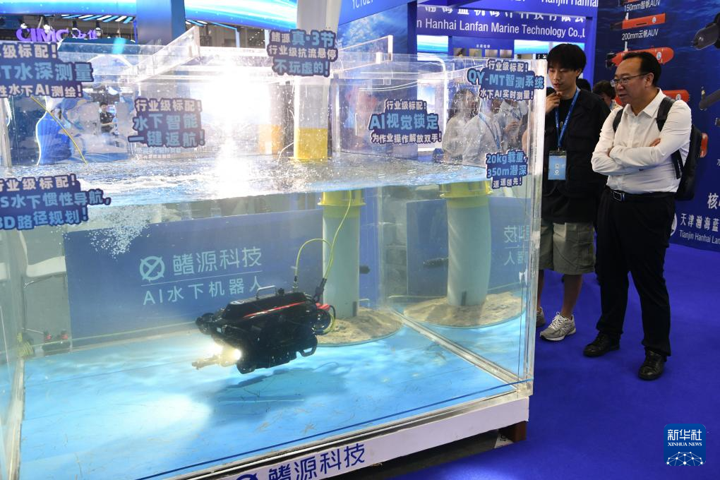 10月31日,观众在2024中国海洋经济博览会上了解一款水下机器人。