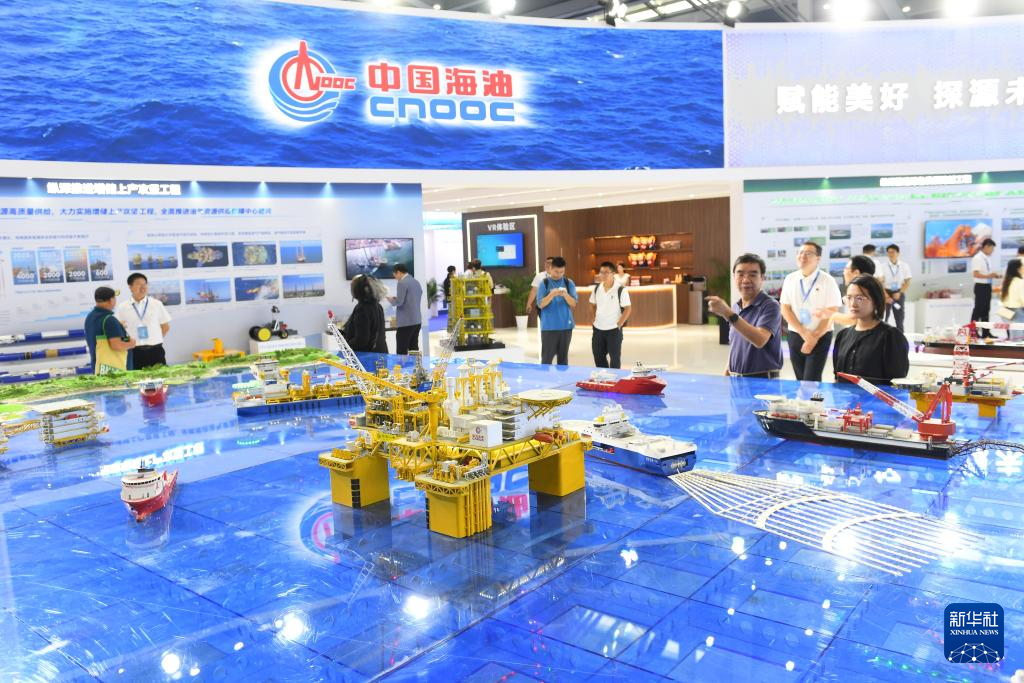 10月31日,观众在2024中国海洋经济博览会中国海油展台参观“深海一号”模型。