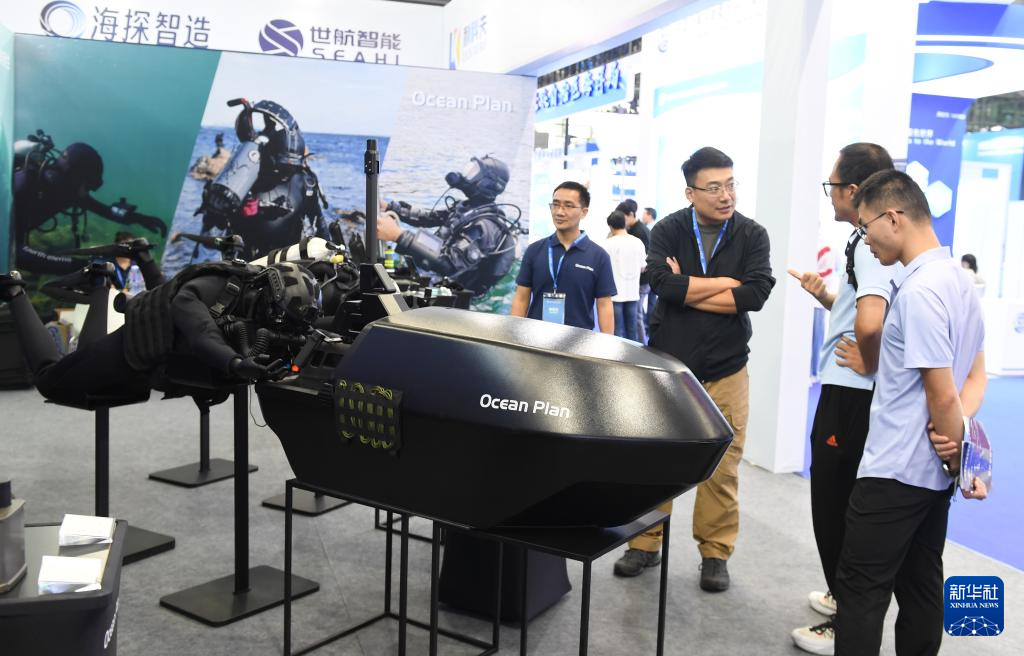 10月31日,观众在2024中国海洋经济博览会了解一款蛙人水下运载器。